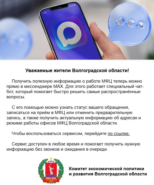 Получить полезную информацию о работе МФЦ теперь можно в MAX