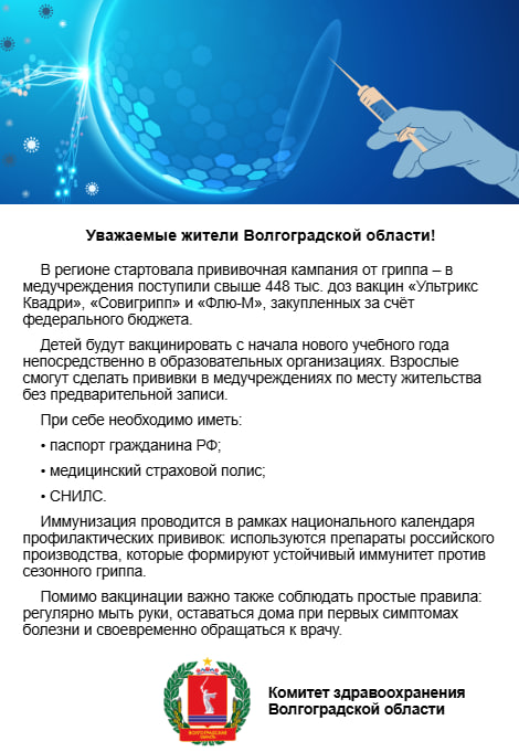 Приближается пора простуд и гриппа. Защититься поможет вакцинация!